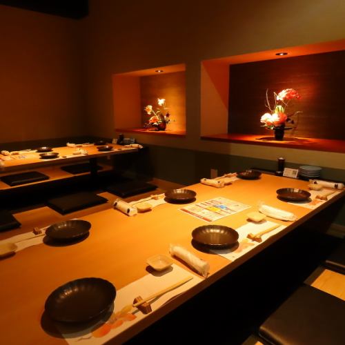 少人数から大人数まで対応可能な大小さまざまな個室を完備。デートや接待などの利用にもオススメです。